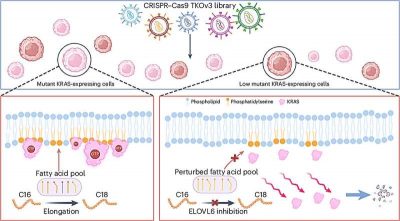 Eseguendo screening knockout mediati da CRISPR–Cas9 su tutto il genoma in linee cellulari di tipo selvatico e KRAS-G12V, i ricercatori hanno scoperto che le cellule che esprimevano il gene ELOVL6 presentavano una minore espressione della proteina KRAS-G12V.