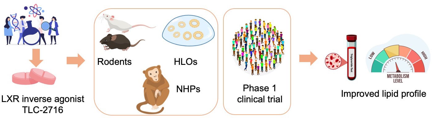 Gli scienziati hanno iniziato analizzando ampi set di dati genetici umani per determinare quale variante di LXR sia correlata ai biomarcatori di trigliceridi elevati nel sangue. I dati hanno indicato le varianti genetiche all’interno di LXRα, che è altamente espresso nel fegato.