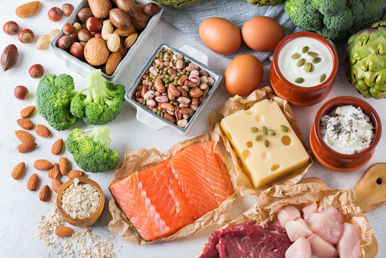 Petto di pollo magro, yogurt greco, broccoli e noci sono tutte fonti di proteine. Antonina Vlasova/Shutterstock